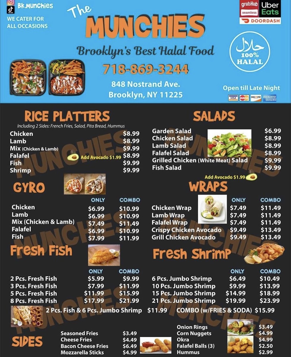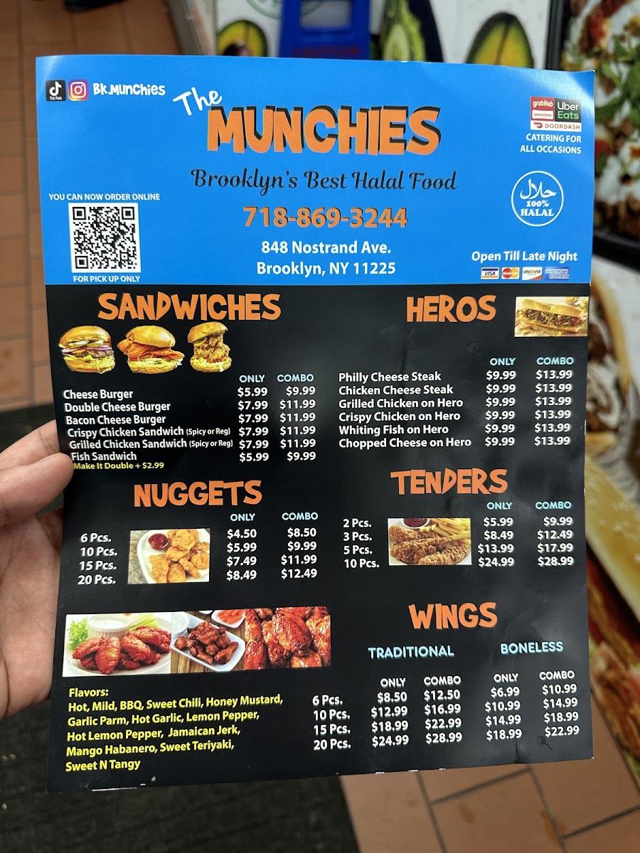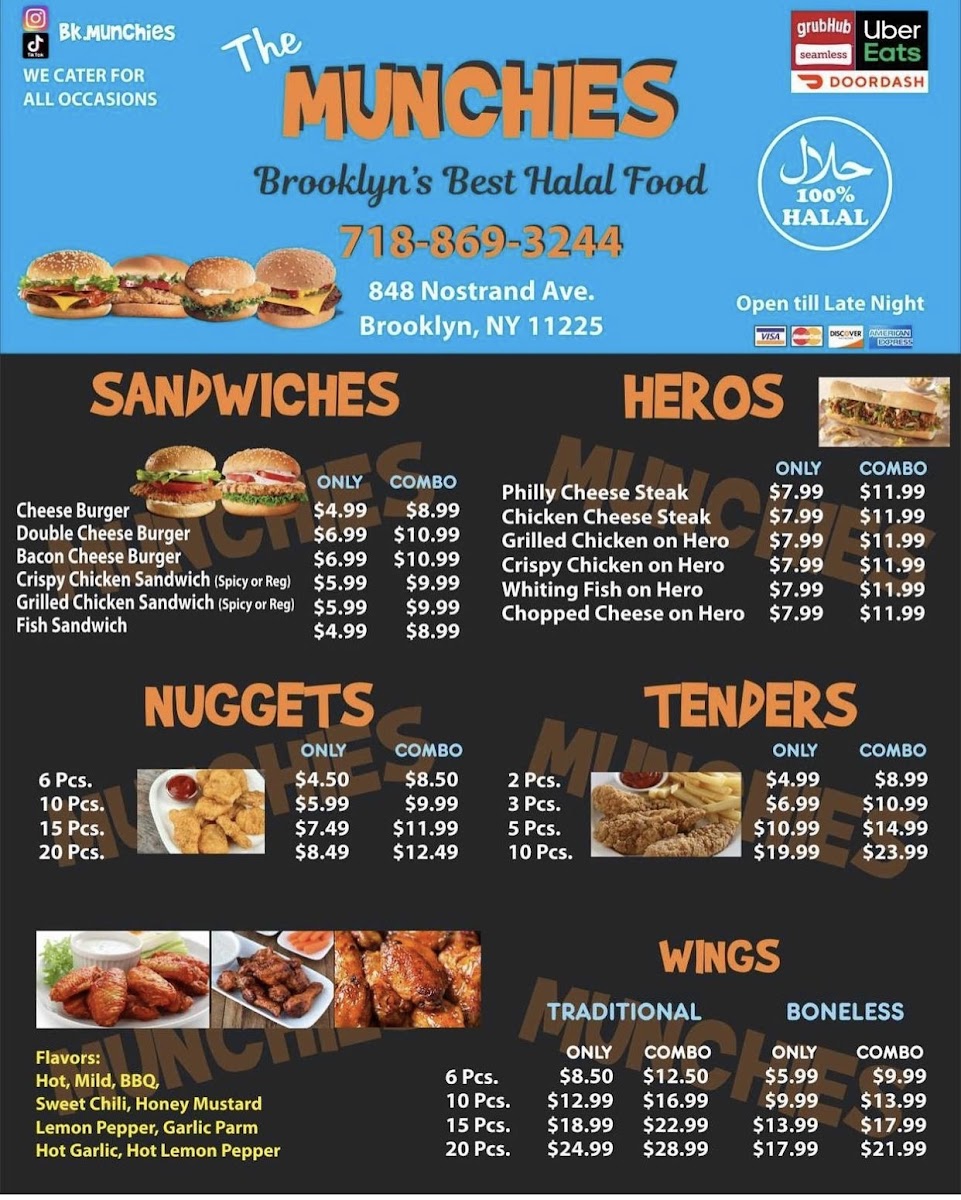 The Munchies offers a straightforward, approachable menu centered around hearty halal dishes and casual bites. You’ll find comforting plates like lamb and chicken over rice alongside satisfying wraps and freshly breaded chicken tenders. The menu pairs well with a relaxed, unpretentious atmosphere, making it a great spot for a midday meal or a laid-back dinner with friends or family.