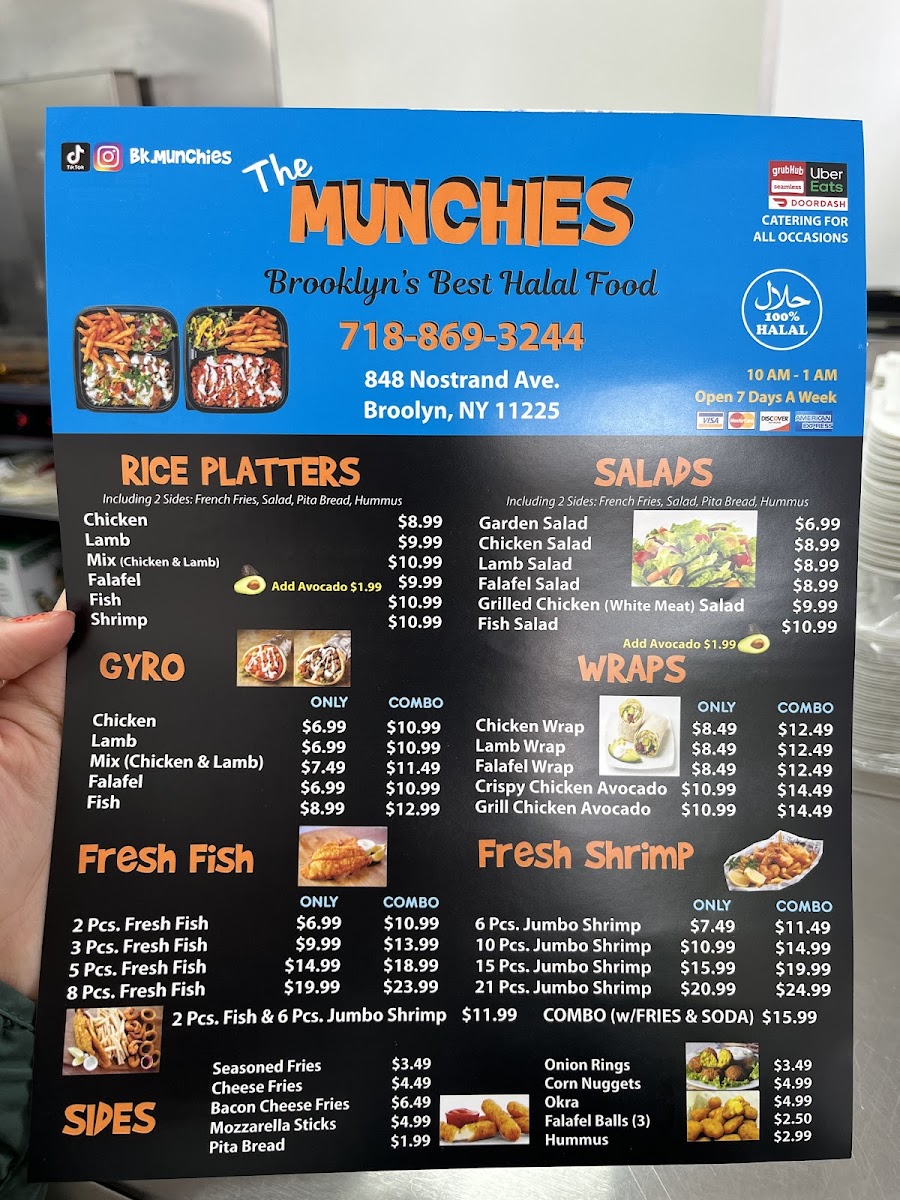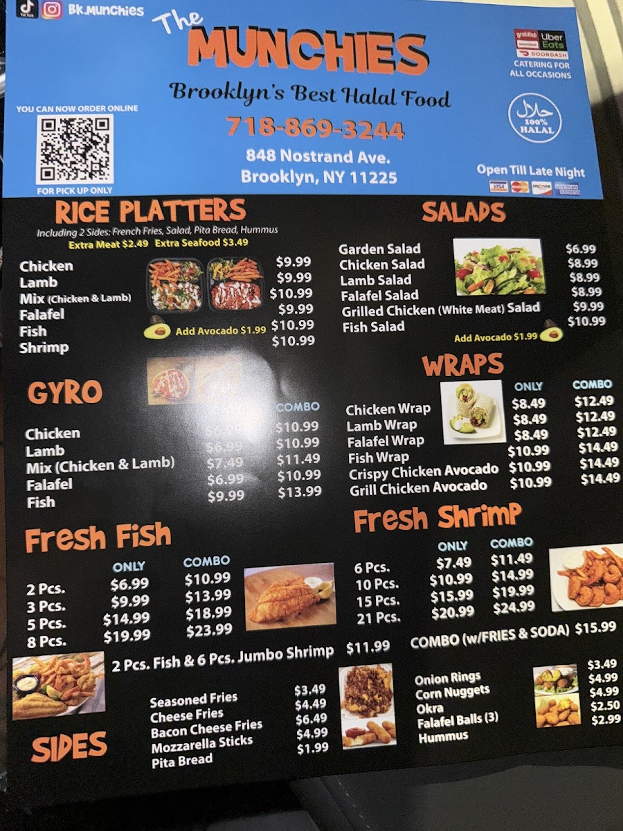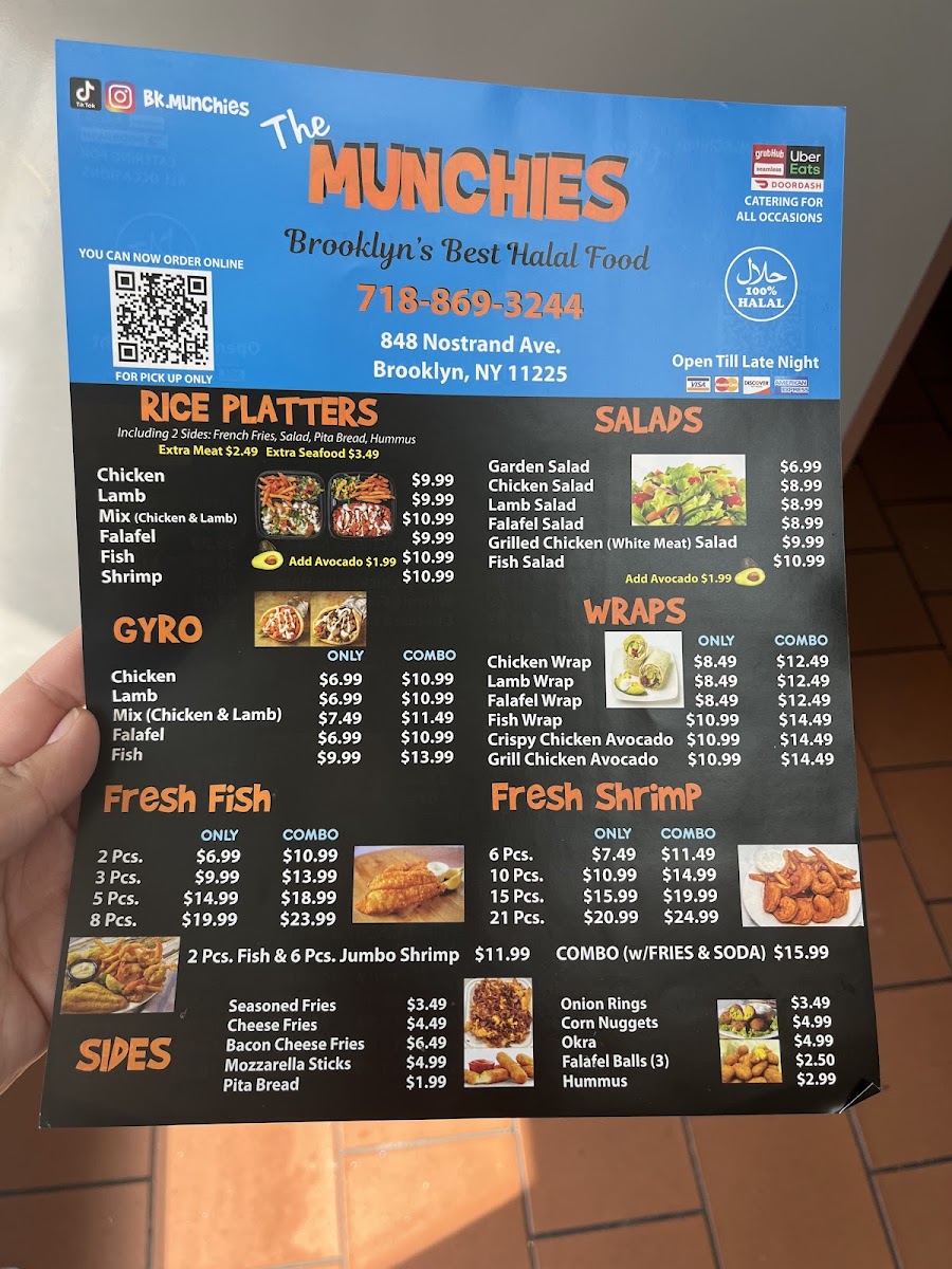 The Munchies offers a straightforward, approachable menu centered around hearty halal dishes and casual bites. You’ll find comforting plates like lamb and chicken over rice alongside satisfying wraps and freshly breaded chicken tenders. The menu pairs well with a relaxed, unpretentious atmosphere, making it a great spot for a midday meal or a laid-back dinner with friends or family.